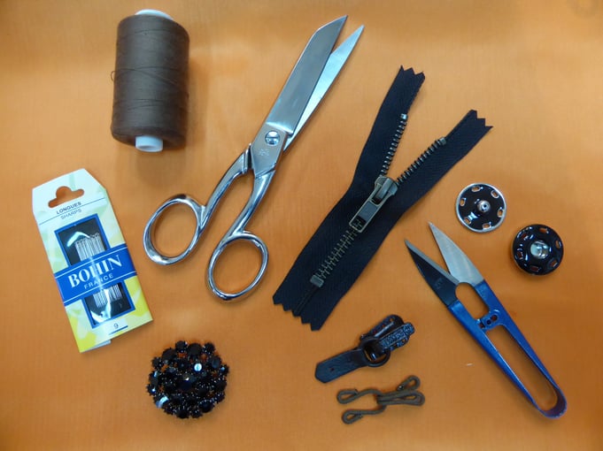 Vous avez besoin de fournitures, de fils, de doublures,de toiles traditionnelles ou thermocollantes, d'épaulettes, de petite mercerie pour la retouche et la mise au point.